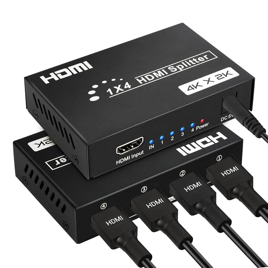 Un Splitter sirve para duplicar una señal de video y/o audio de una sola fuente (como una consola, PC o reproductor) hacia varias pantallas al mismo tiempo.